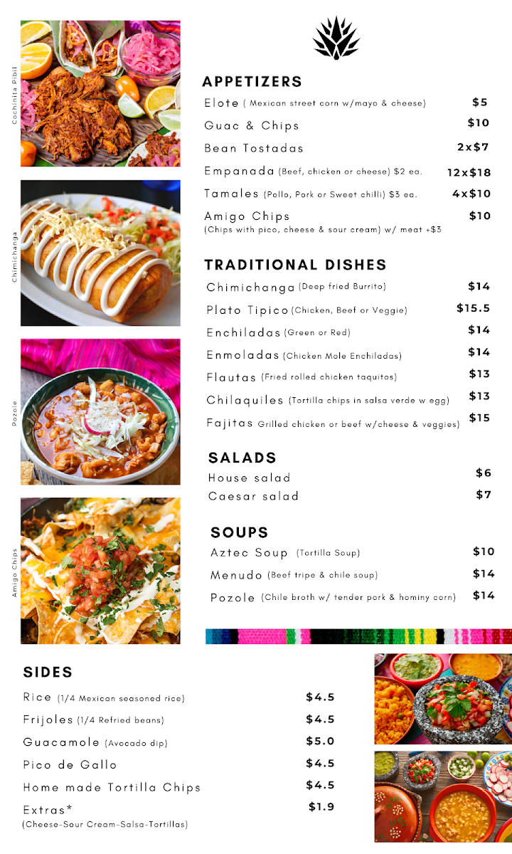Appetizers like the crunchy Colombian Empanada with aromatic fillings and Amigo Chips loaded with beans, cheese, and pico de gallo are perfect for sharing. The authentic atmosphere and generous portions emphasize a genuine Mexican experience, making it a beloved spot for both quick bites and deeper culinary exploration.